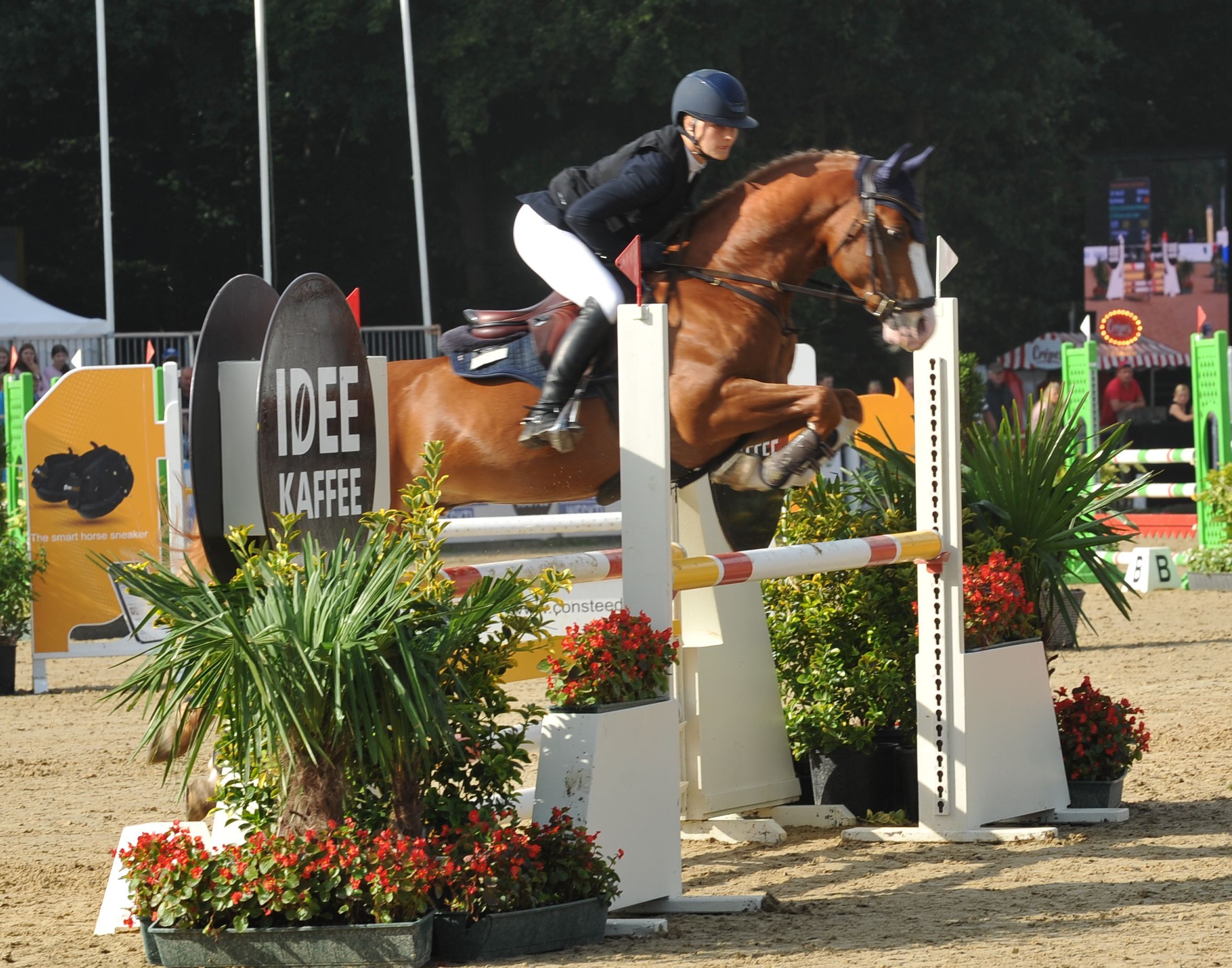 mit 8 Jahren erst im Sport und auf Anhieb von A-S Spingen erfolgreich auf internationaler Ebende unter Meredith Michaels-Beerbaum, danach unter Ihrem ständigen ReiterDaniel Dassler.